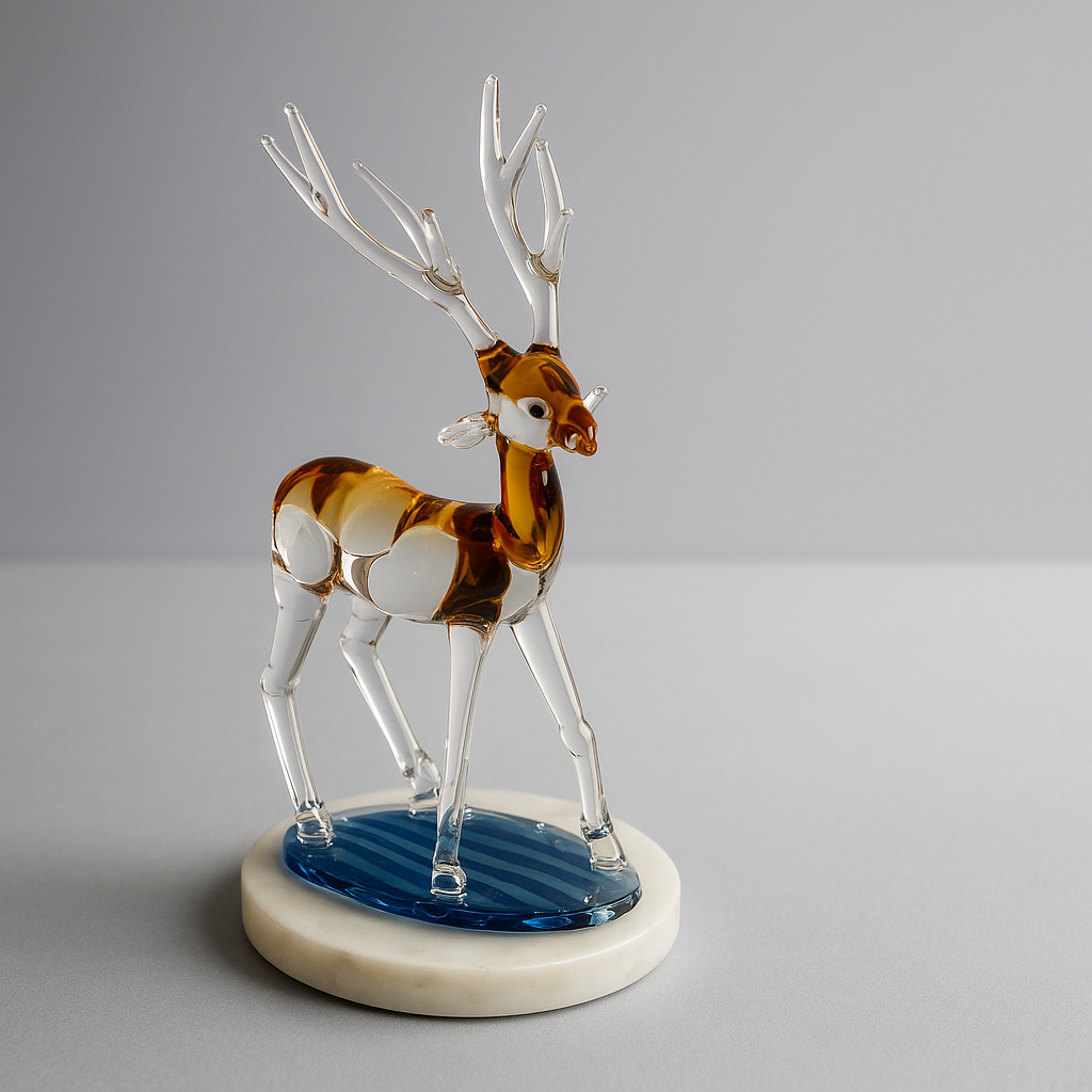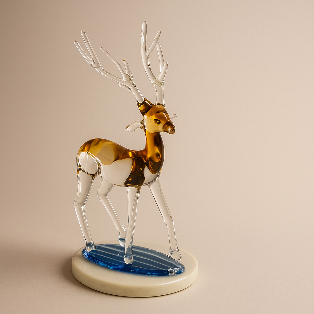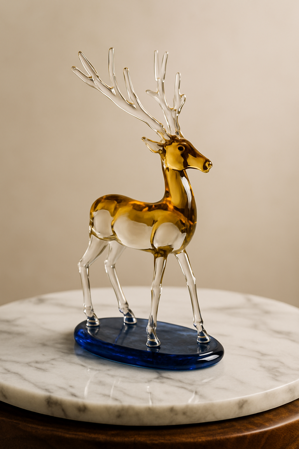 Graceful and poised, the Amber Stag stands as a symbol of strength, serenity, and natural beauty. Handblown from crystal-clear and rich amber-toned glass, this stunning figurine captures the spirit of the wild with its tall antlers and fluid form. Set on a polished dual-tone base, it’s a captivating accent for modern consoles, festive decor, or meaningful gifting.