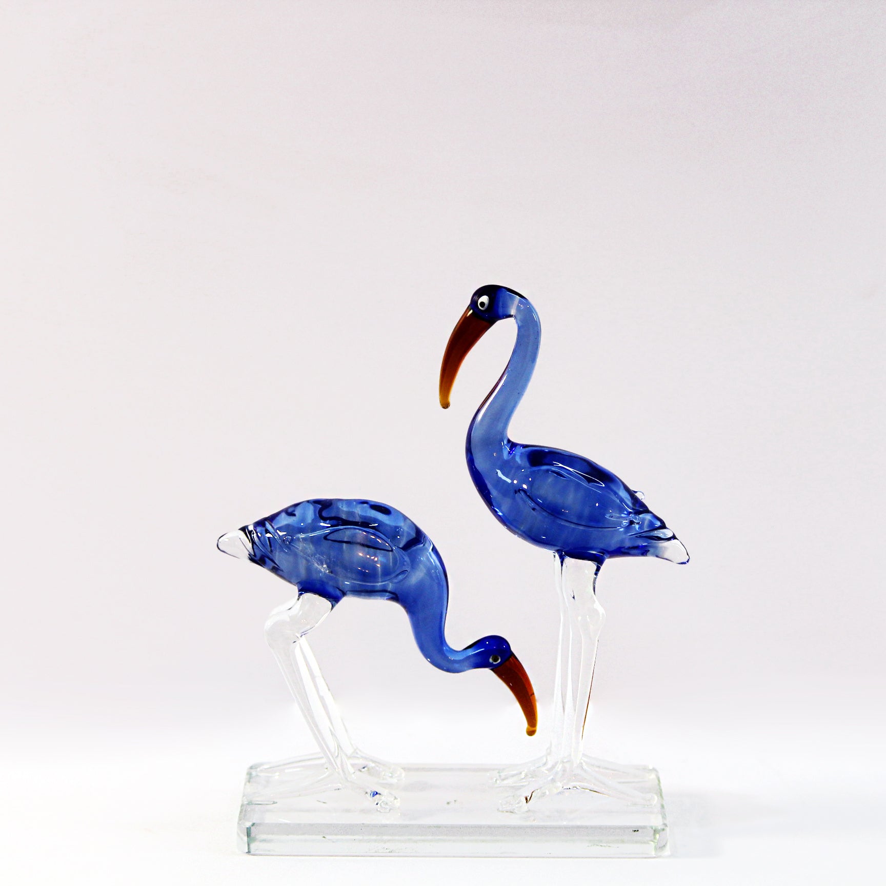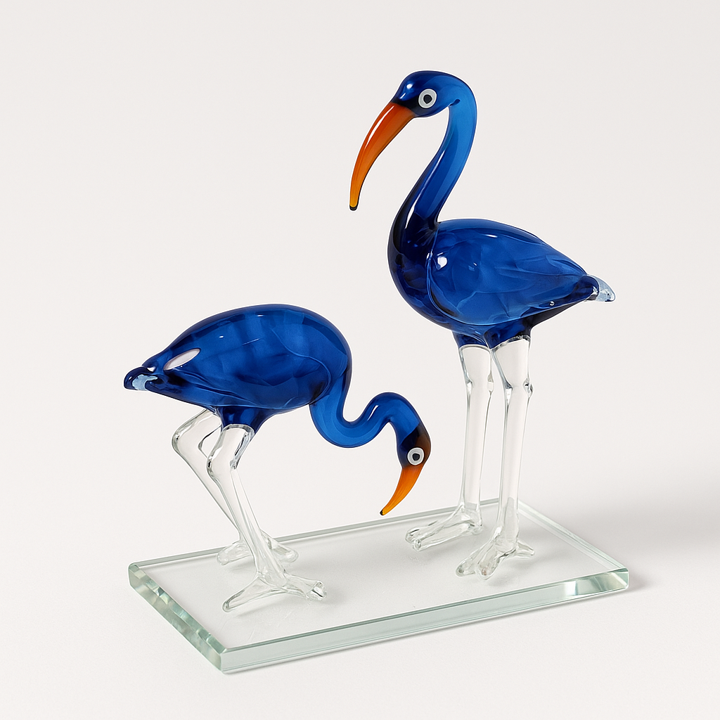 Grace meets glass in our Azure Cranes of Harmony — a stunning handblown figurine set featuring two elegant cranes crafted in deep sapphire blue with vibrant orange beaks. One stands tall in quiet watchfulness, while the other bows in graceful motion, symbolizing balance, unity, and flow.