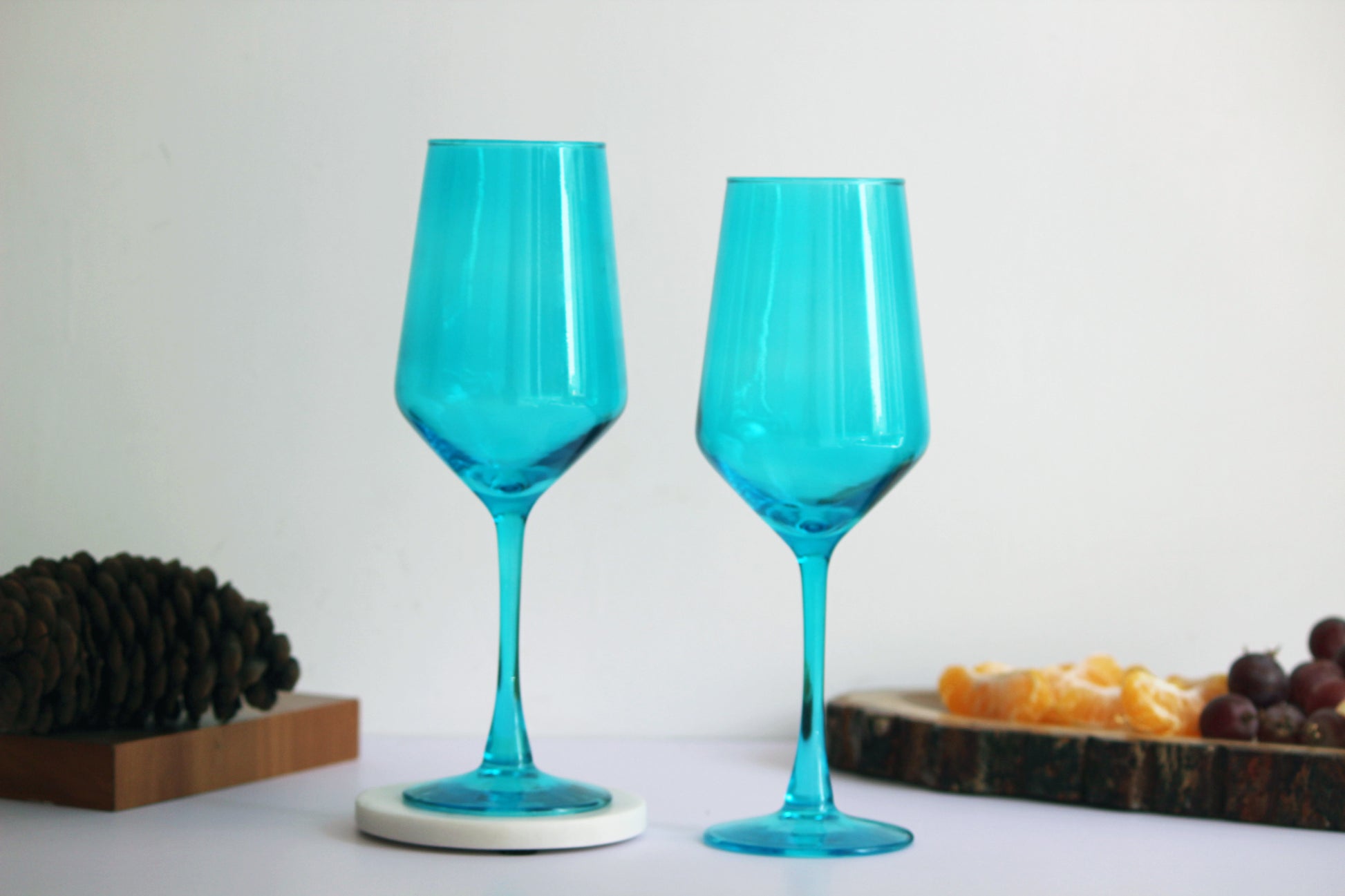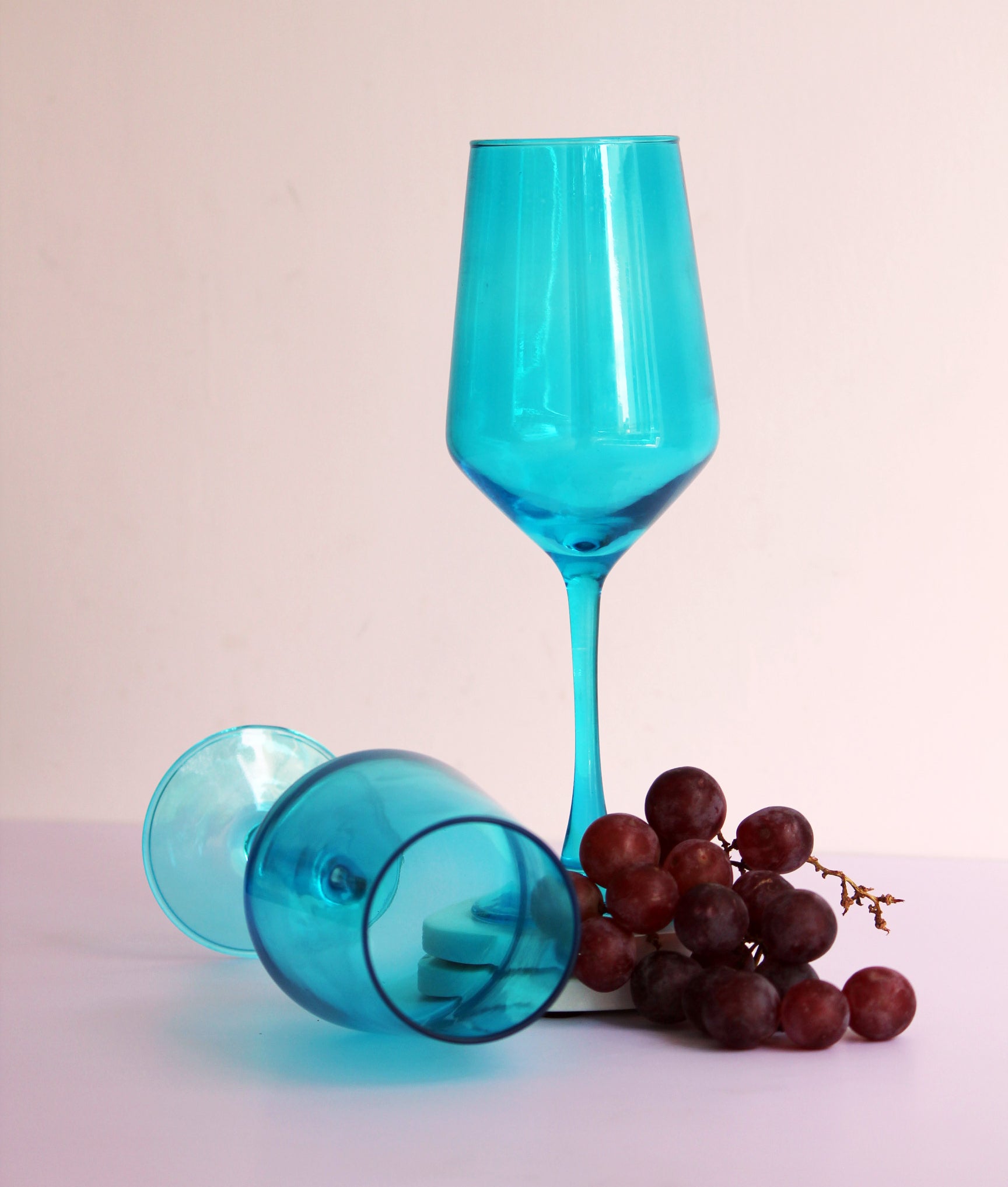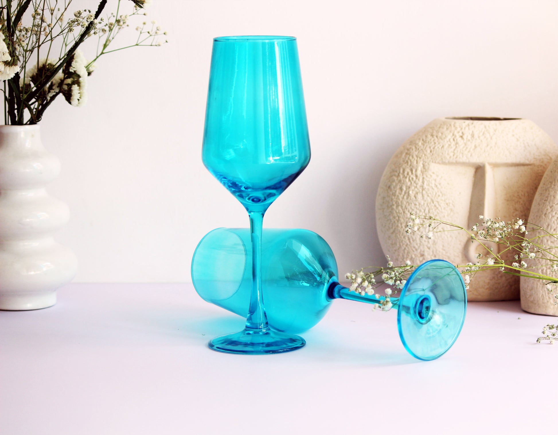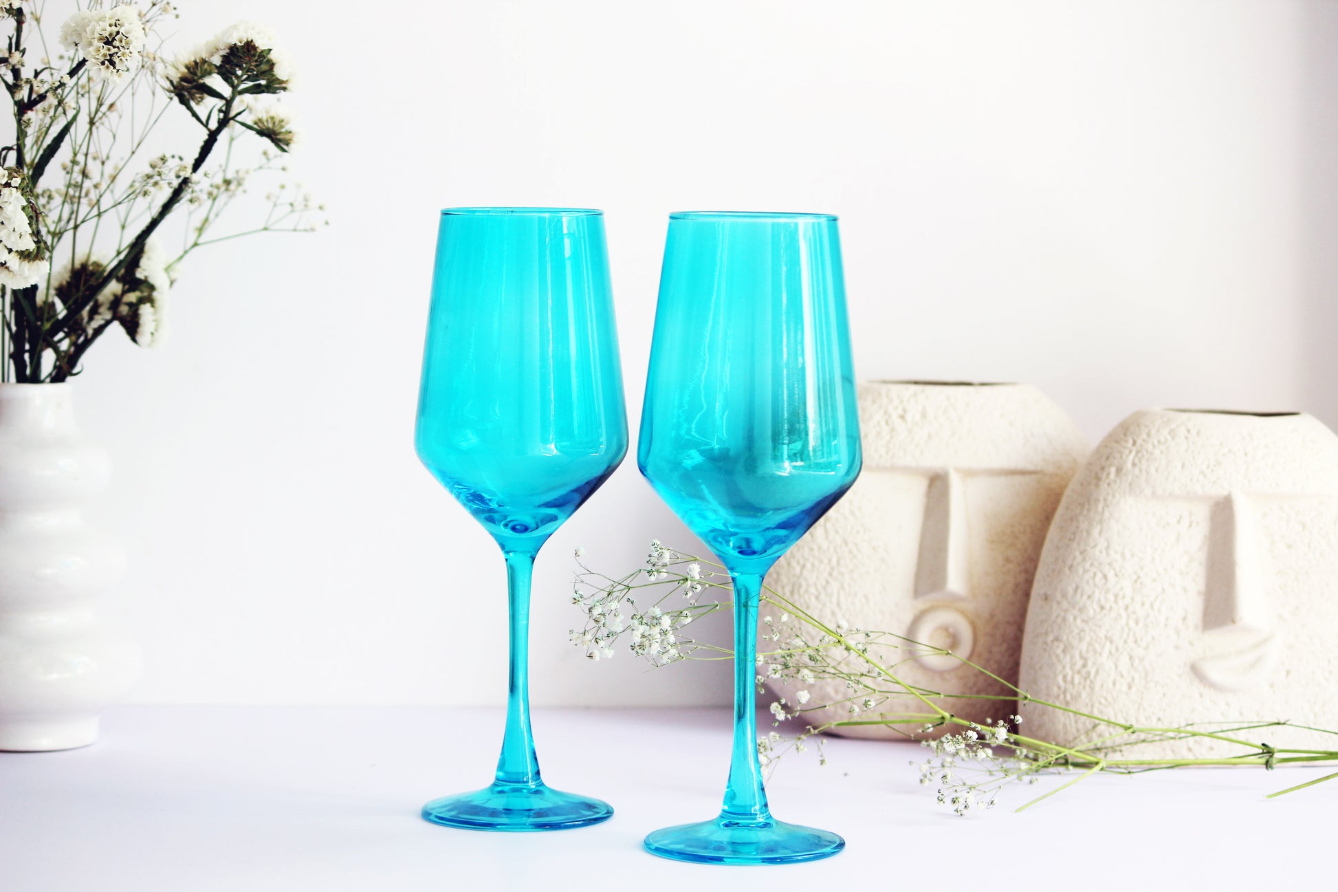Cool, calm, and captivating — our Clear Blue wine glasses are hand-blown by artisans and tinted with a serene sky-blue hue. A refreshing addition to your glassware collection.