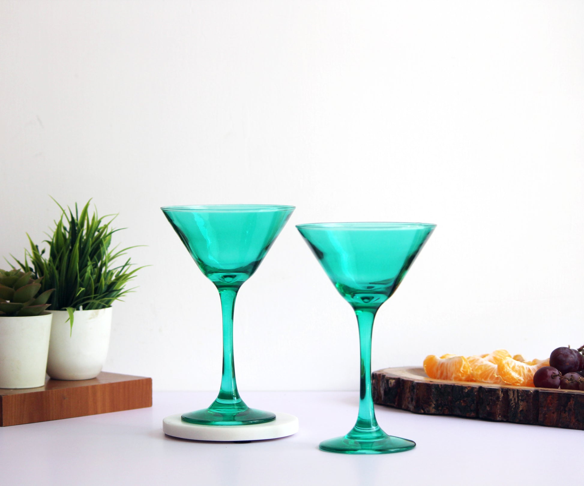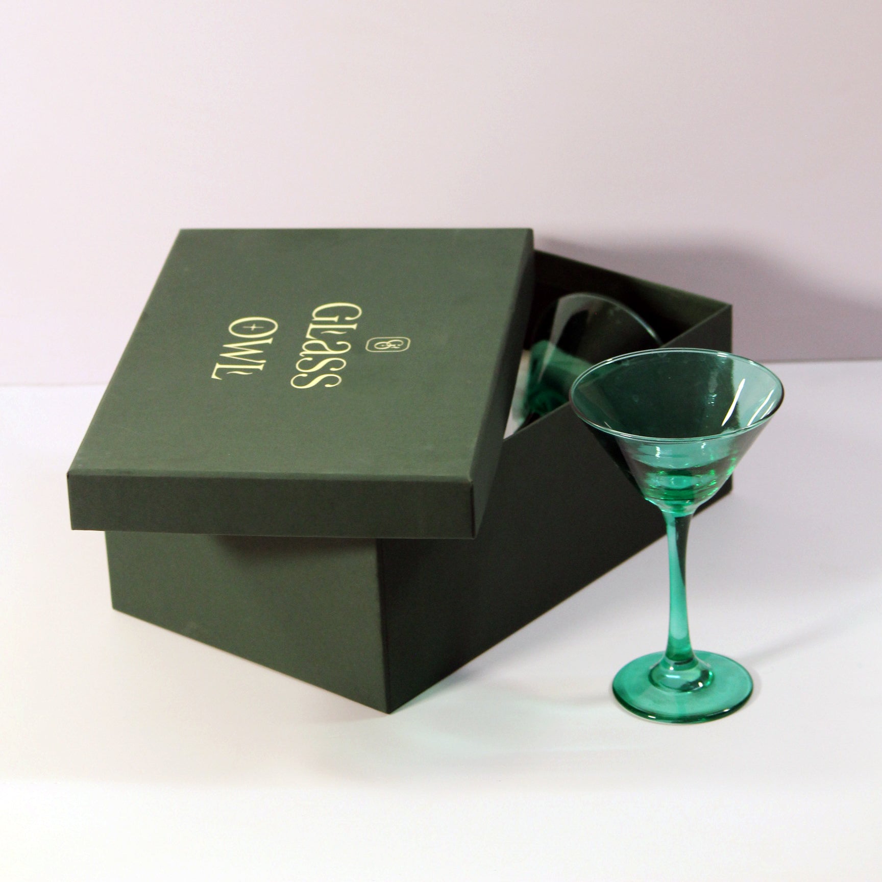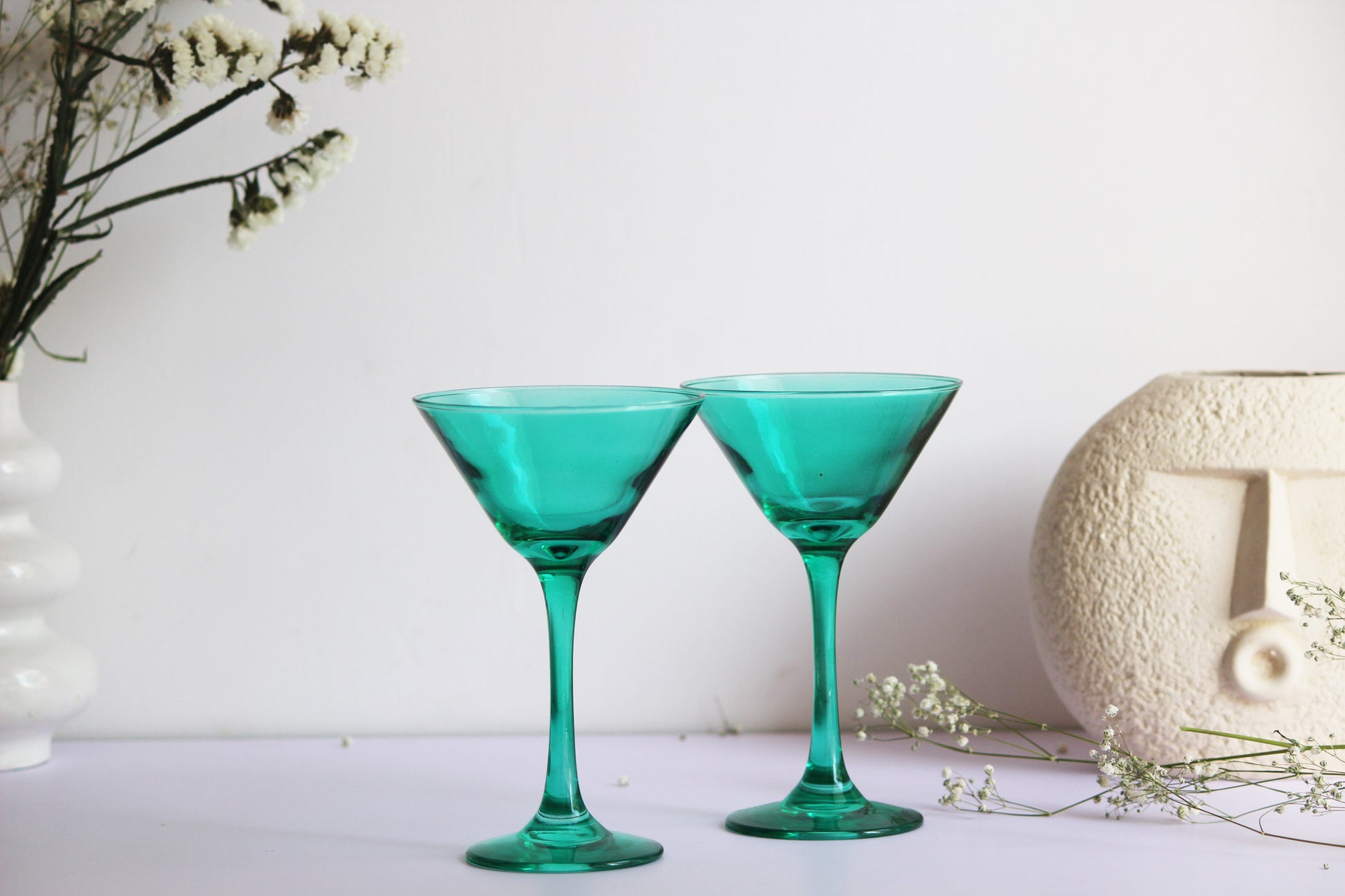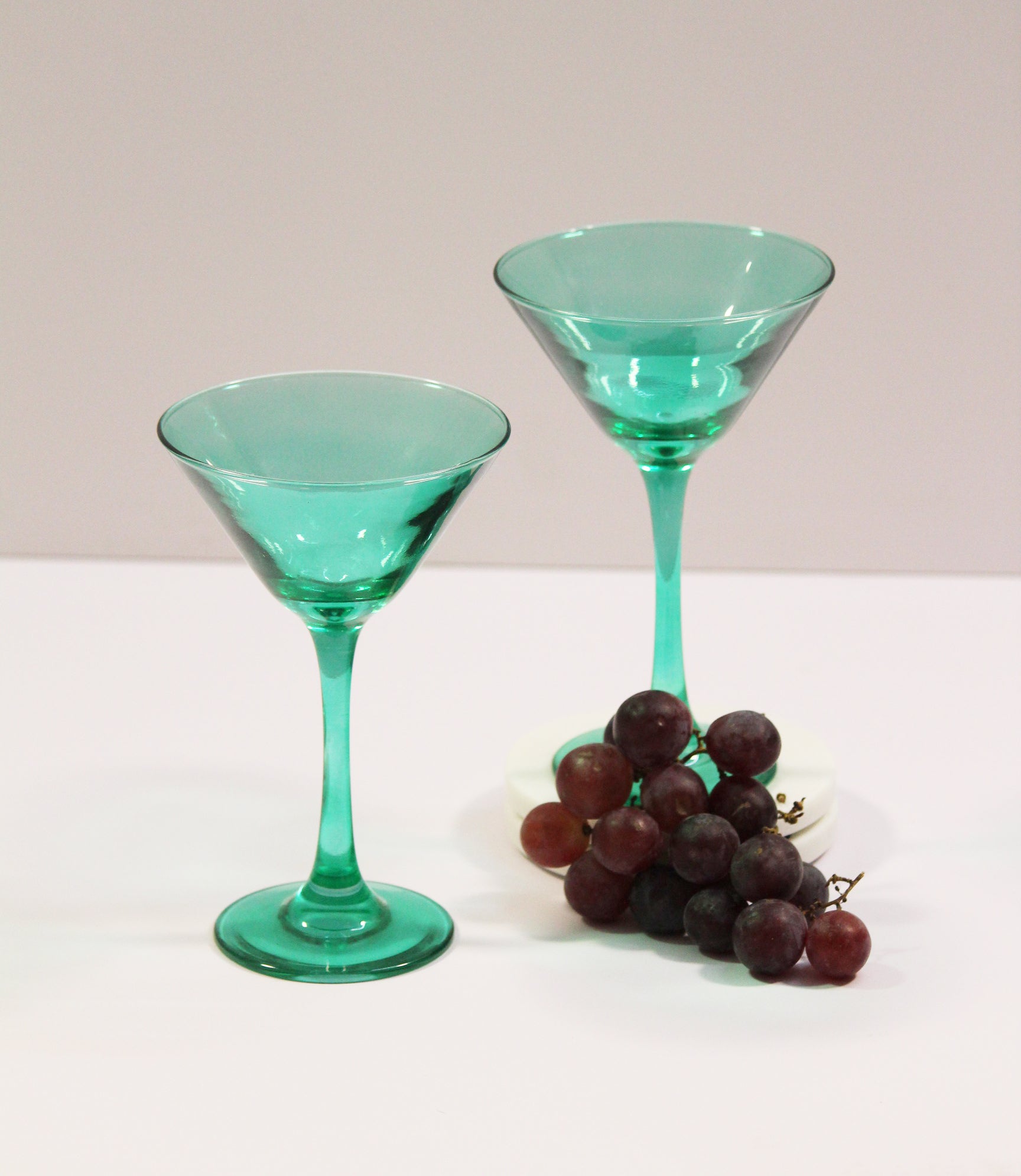 Luxuriously bold, our Emerald Green martini glasses are hand-blown by artisans and colored to perfection. Their deep, rich hue adds a touch of sophistication and elegance to any occasion.