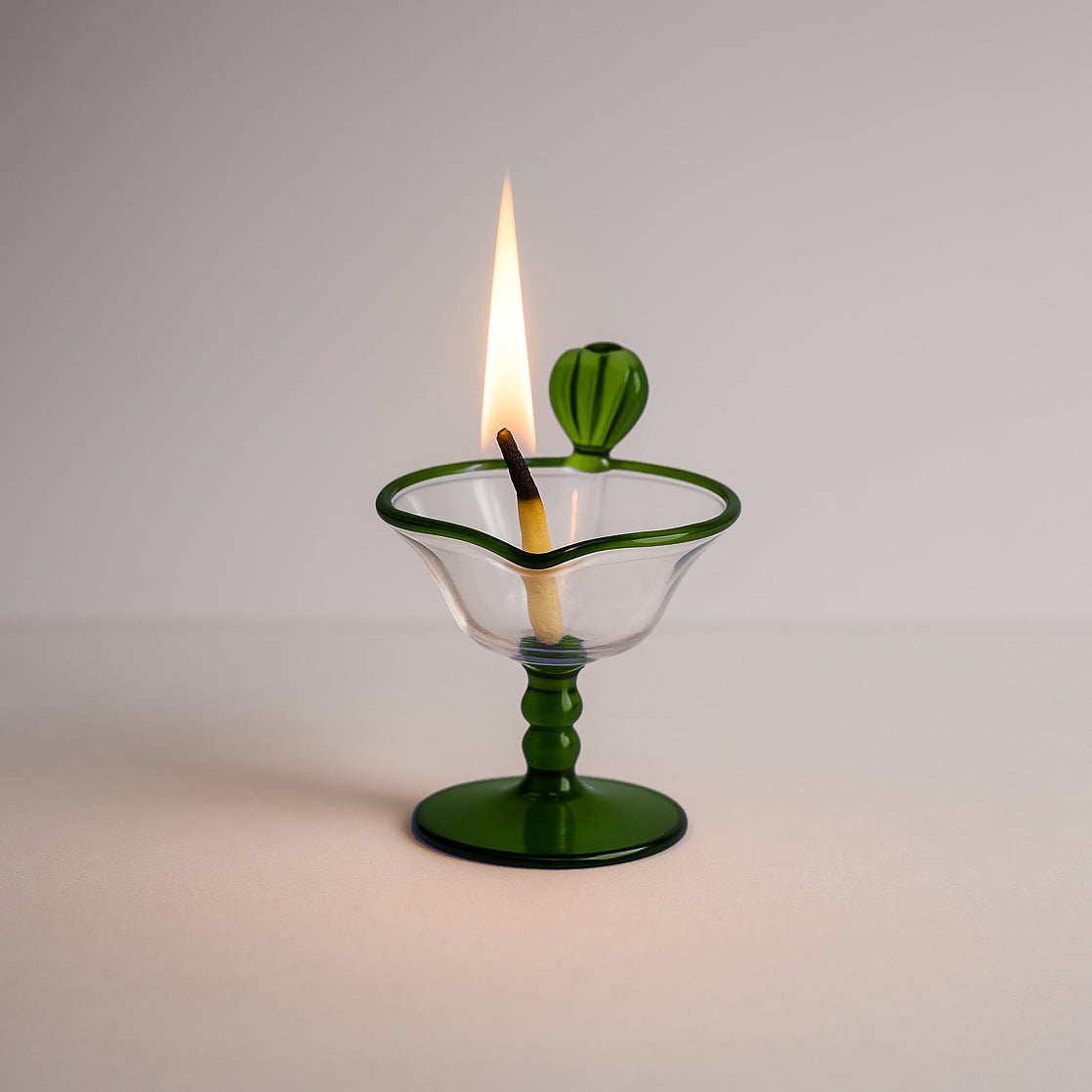 Infuse your pooja rituals with the grounding calm of the Emerald Green Glass Pooja Diya. Crafted in deep, jewel-toned glass, this diya reflects serenity and balance. Its rich green glow brings a touch of nature-inspired elegance to your altar, perfect for daily use, gifting, or festive décor.