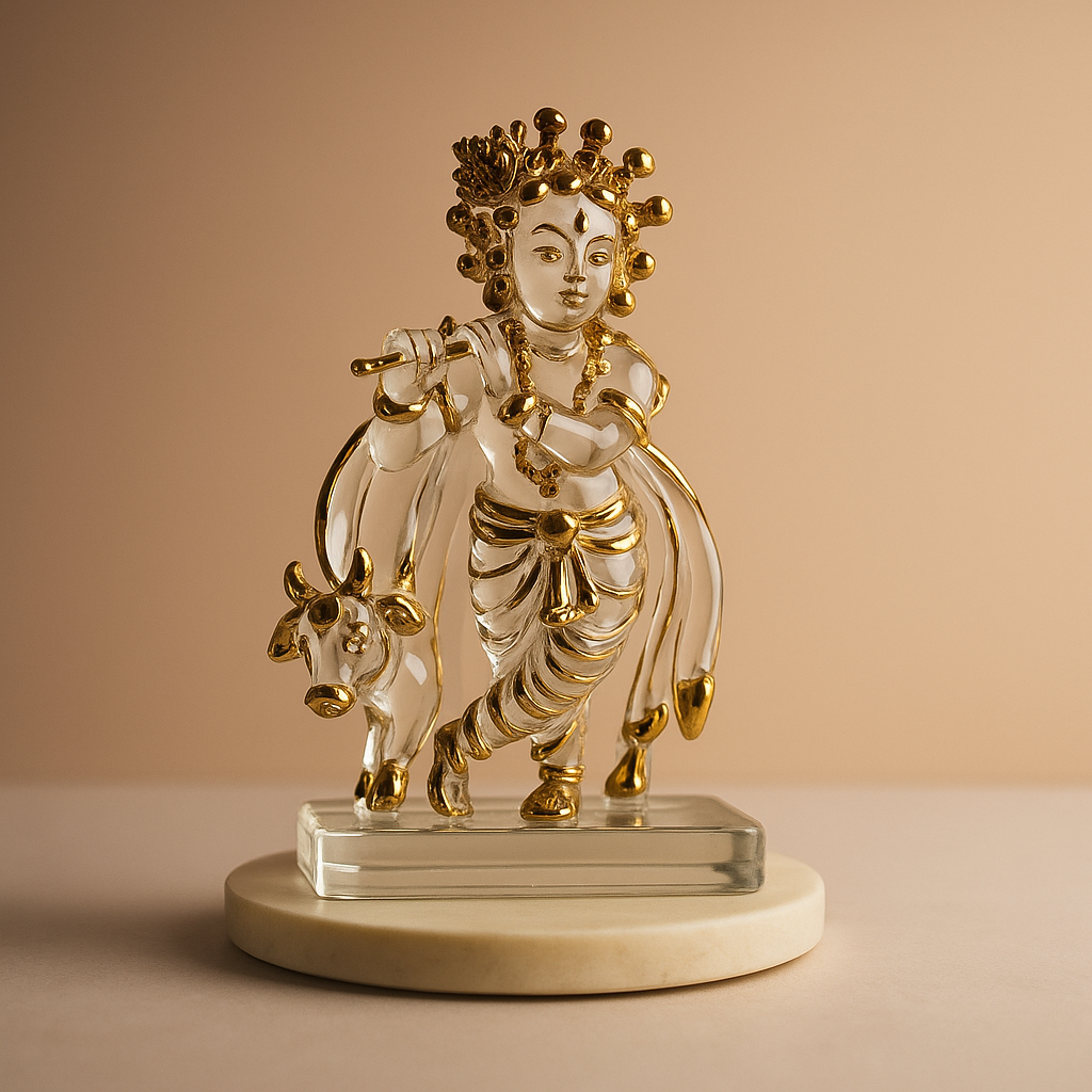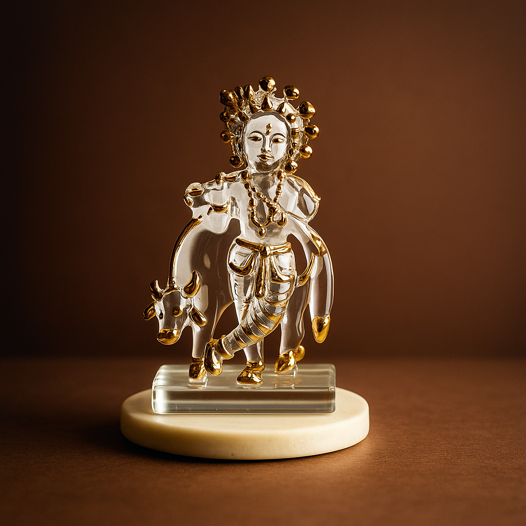 This idol captures Krishna’s divine connection with nature, making it a meaningful choice for festive gifting, wedding return favors, and devotional hampers. With detailed craftsmanship and symbolic depth, it adds soulful beauty to homes and workspaces alike.