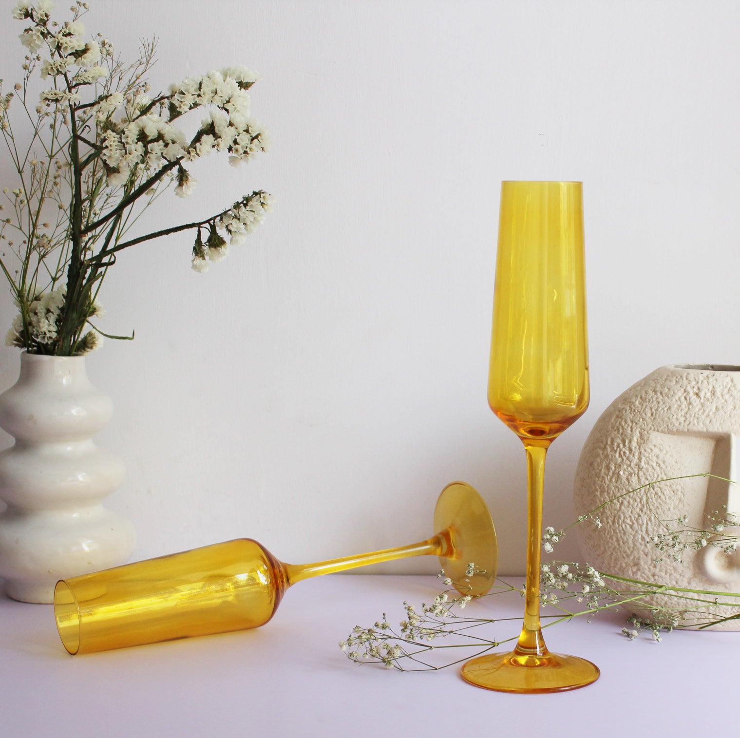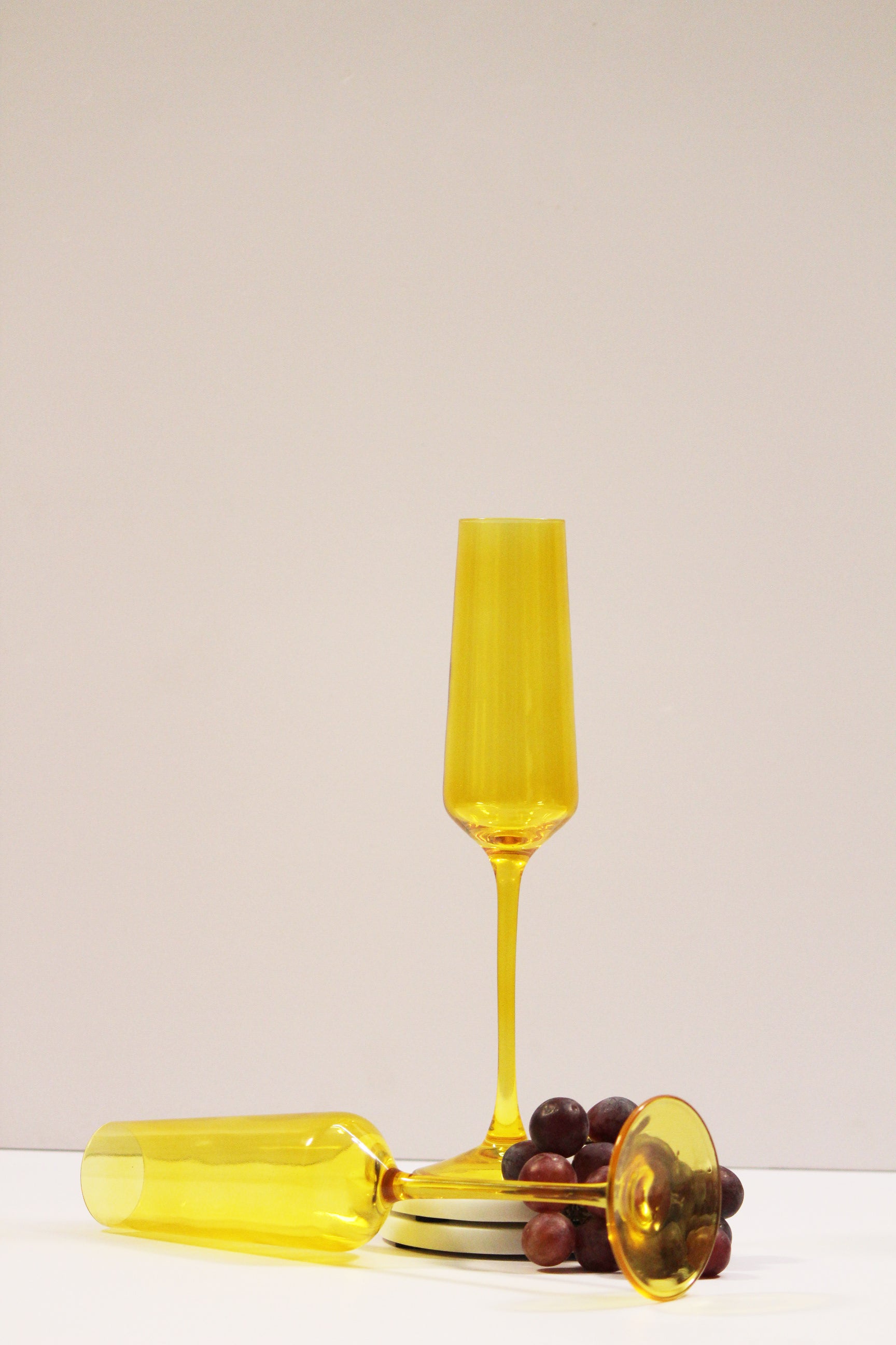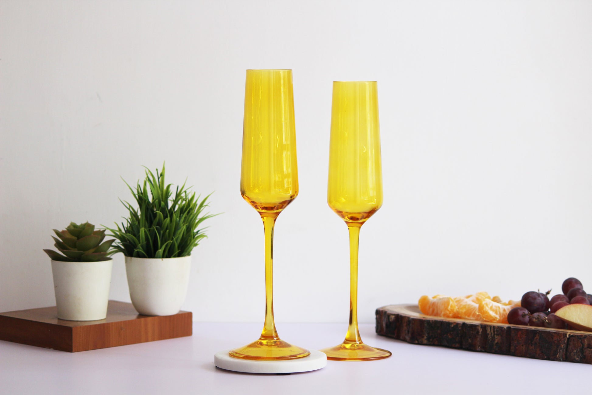Bright, joyful, and radiant — our Golden Yellow flute glasses are expertly vibrantly colored for brilliance that lasts. Made to celebrate life’s golden moments.