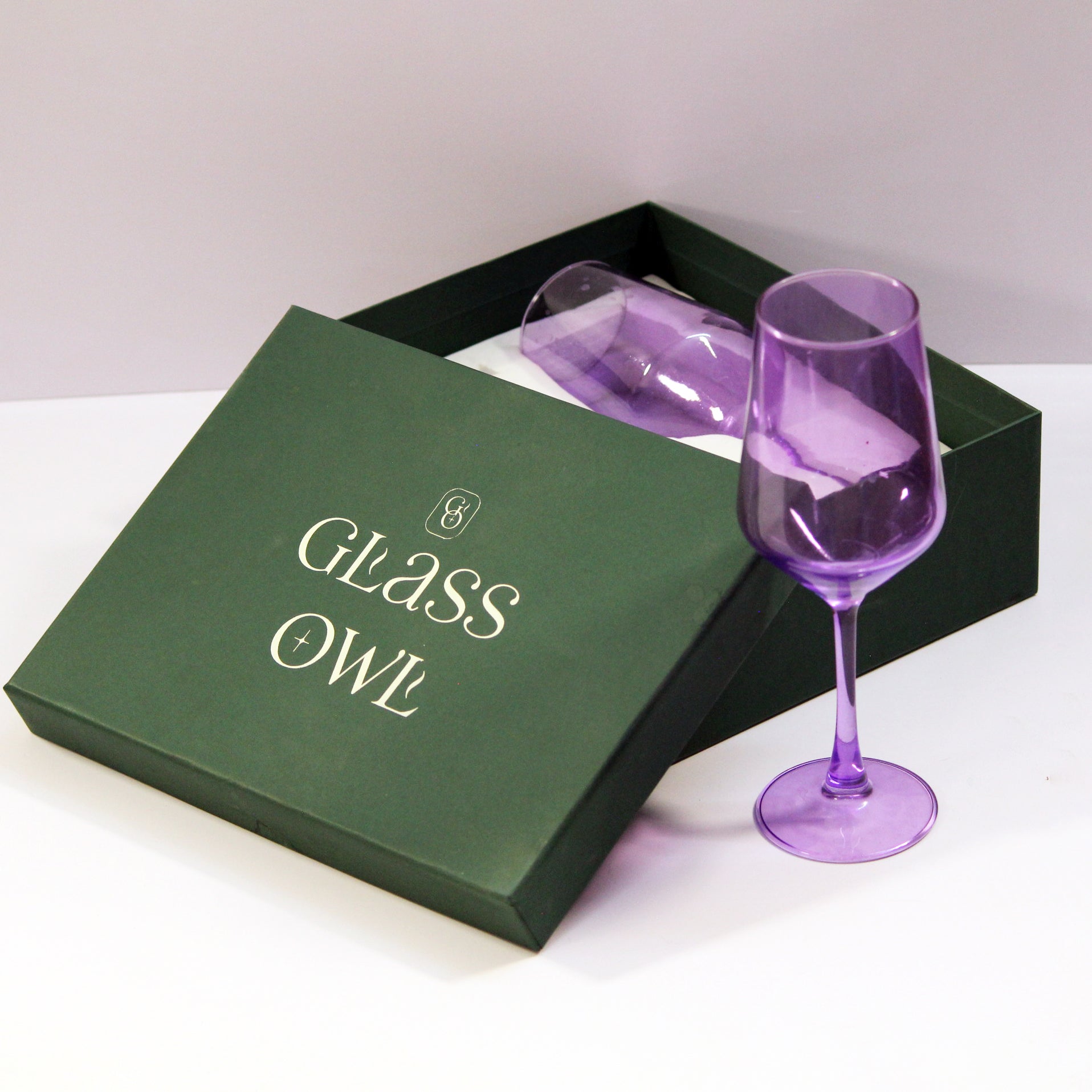 Graceful and calming, our Lavender Bliss wine glasses are hand blown, colored by skilled artisans. The soft purple hue adds a touch of serenity to every pour and every table.
