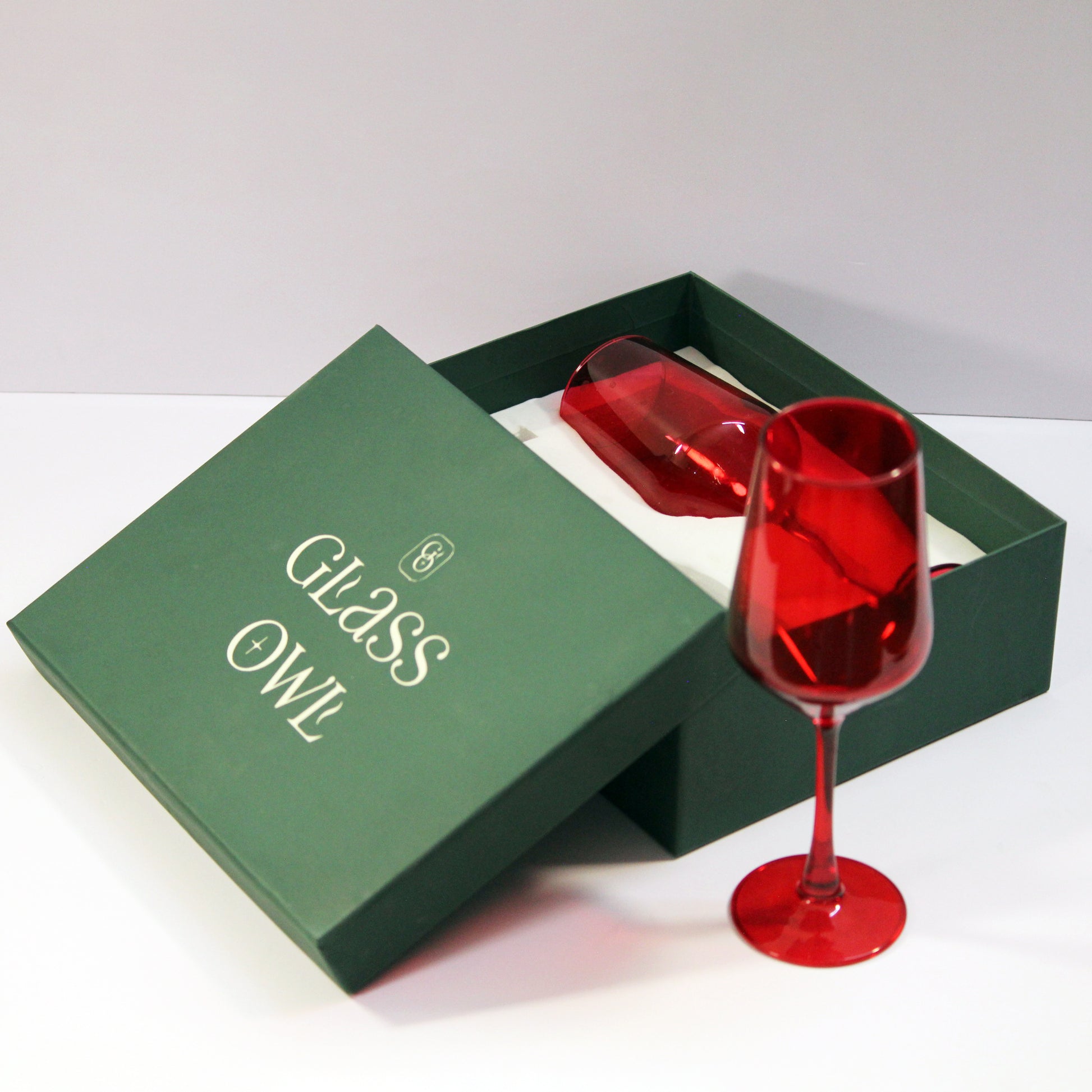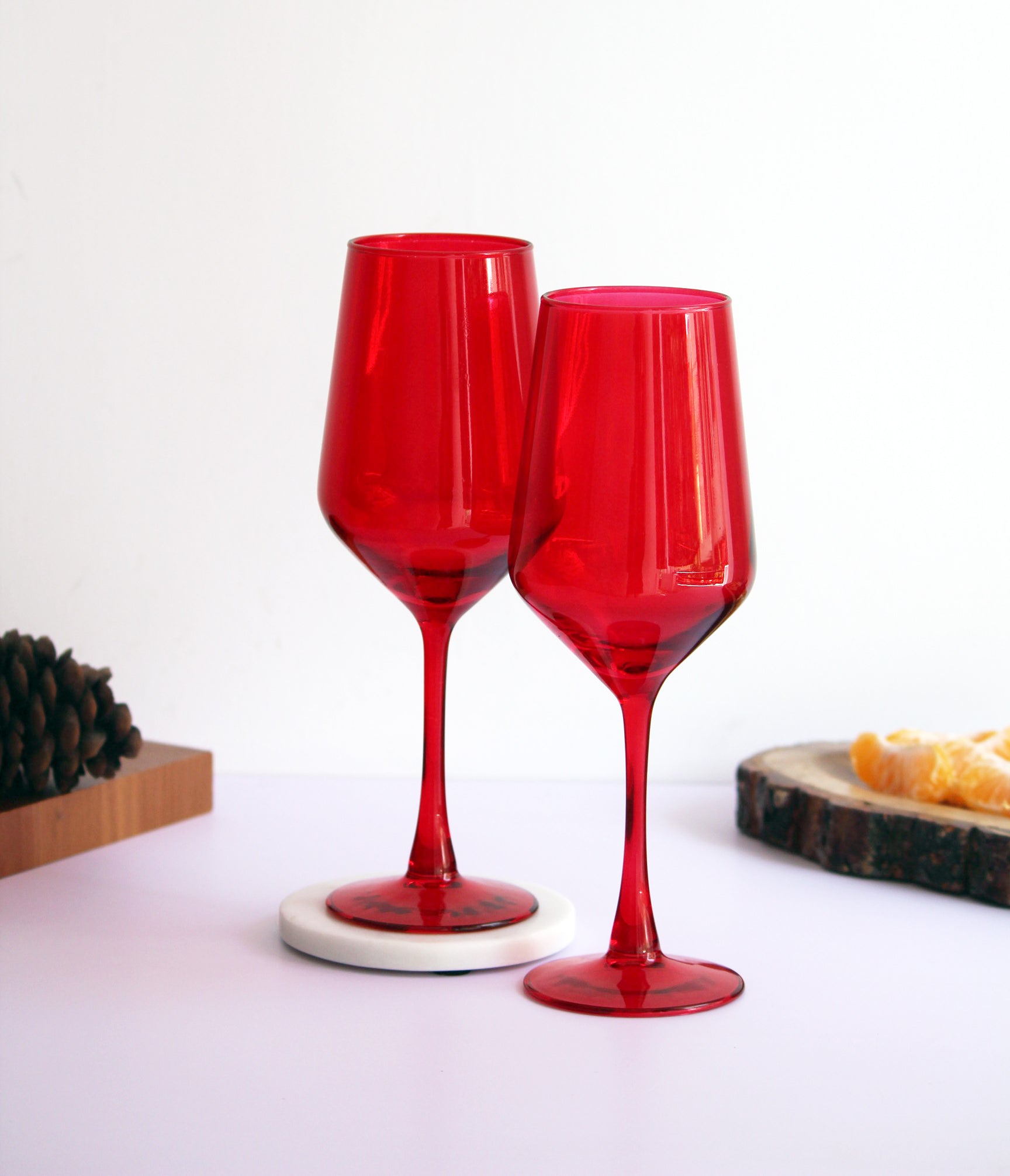 Bold, rich, and full of charm — our Ruby Red wine glasses are hand-blown by skilled artisans and colored in a deep, passionate hue. Perfect for unforgettable pours and striking table settings.