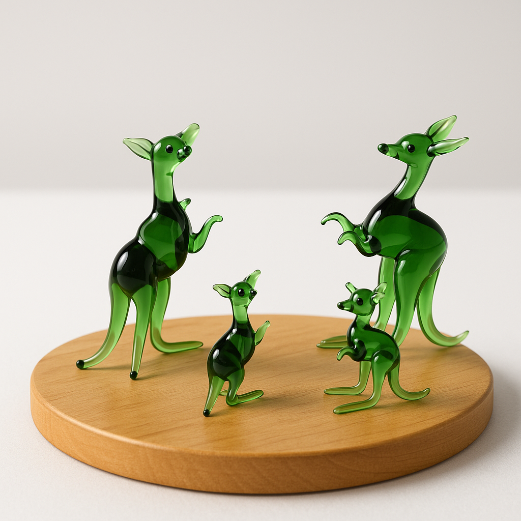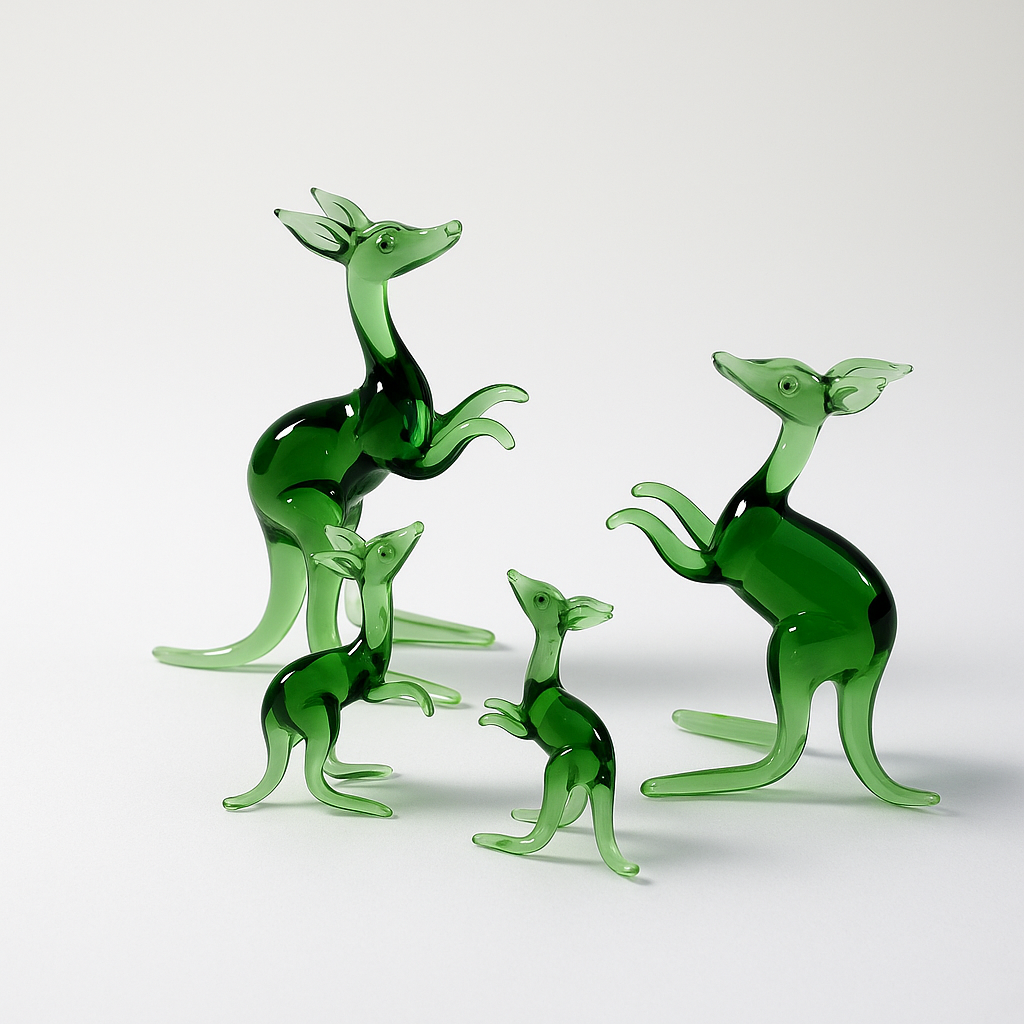 Verdant Voyagers | Green Glass Kangaroo Family